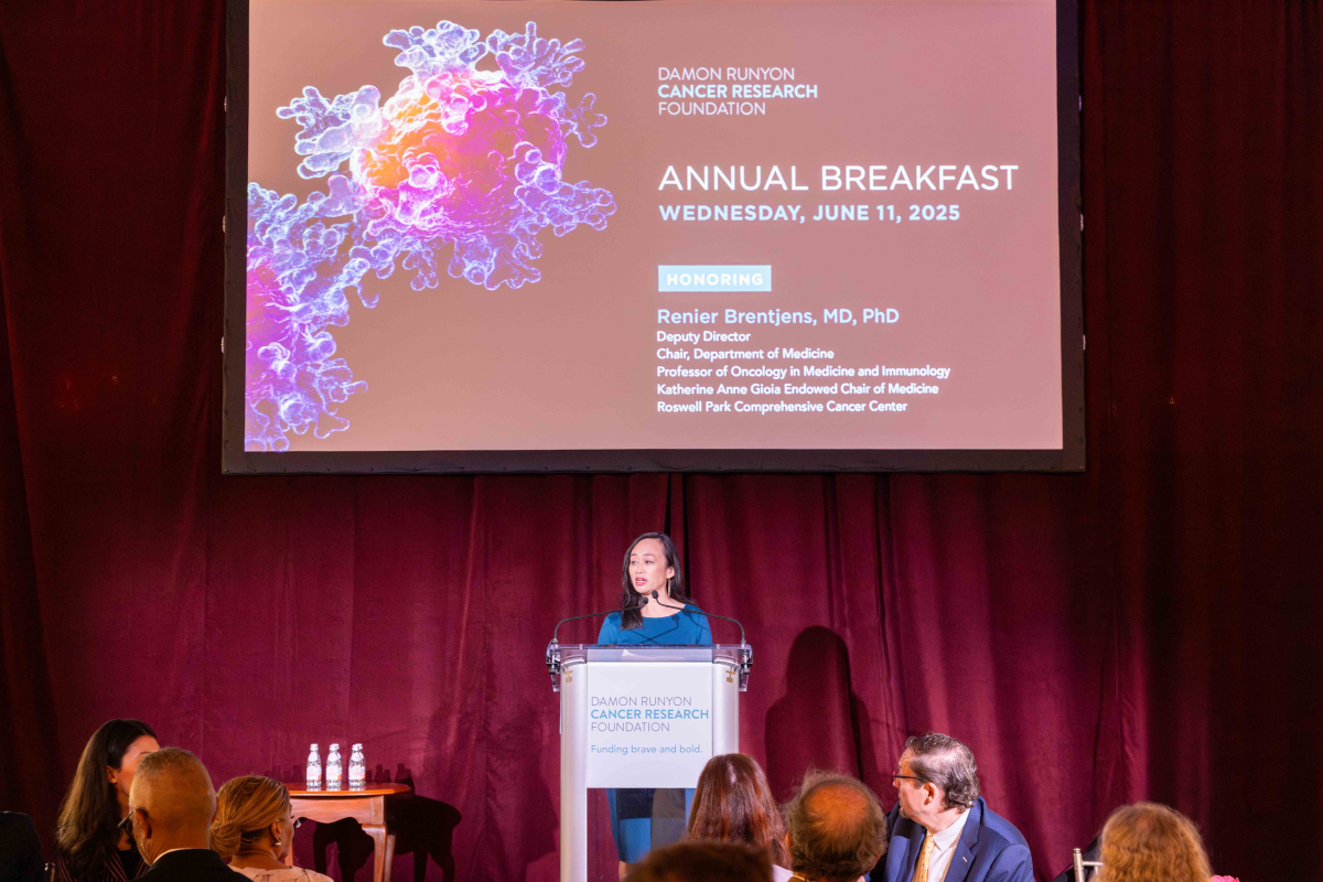 The Breakfast honored cellular therapy pioneer Renier Brentjens, MD, PhD, Deputy Director and Chair of Medicine at Roswell Park Comprehensive Cancer Center. A former Damon Runyon-Lilly Clinical Investigator, Dr. Brentjens contributed to the development of the first FDA-approved CAR-T cell therapy, which has revolutionized the treatment of blood cancers.